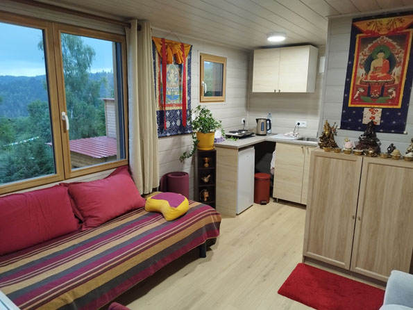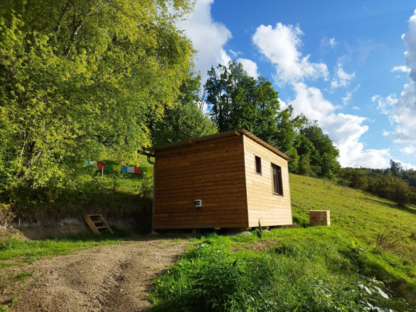 Nous sommes heureux de vous annoncer l'achèvement des travaux du quatrième ermitage qui est habité par le moine Namgyal depuis fin août. Nous exprimons à nouveau notre profonde gratitude et notre reconnaissance pour le soutien et la générosité des donateurs. Grâce à vous, le souhait exprimé par Lama Tsultrim il y a six ans pour créer une zone monastique à Bodhicharya France a pu se concrétiser. Nos remerciements aussi à Jean-Yves (Atelier BBS) qui a réalisé les travaux de ce quatrième ermitage avec efficacité, tout en respectant largement les délais.